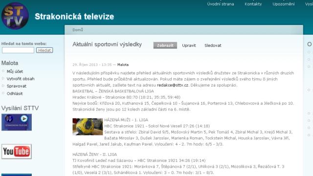 Ještě více informací přináší Strakonická televize na svém webu. Od listopadu zde najdete aktuální sportovní výsledky, které se týkají strakonických týmů a sportovců. Vedle klasických reportáží navíc budou k vidění i záběry bez komentáře ze zajímavých akcí. Všechna videa jsou k dispozici ve vysokém rozlišení. (bob)