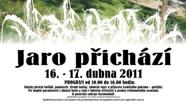 O tom, že jaro přichází, se můžete přesvědčit na stejnojmenné akci v prostředí středověkého vodního mlýna v Hoslovicích. Ve dnech 16. a 17. dubna si zde můžete prohlédnout ukázky pletení košíků, pomlázek, výroby košťat, zdobení vajec nebo přípravu tradičního velikonočního pokrmu, tzv. pučálky. Program doplní poradenství v oblasti bylin a čajů. (bob)
