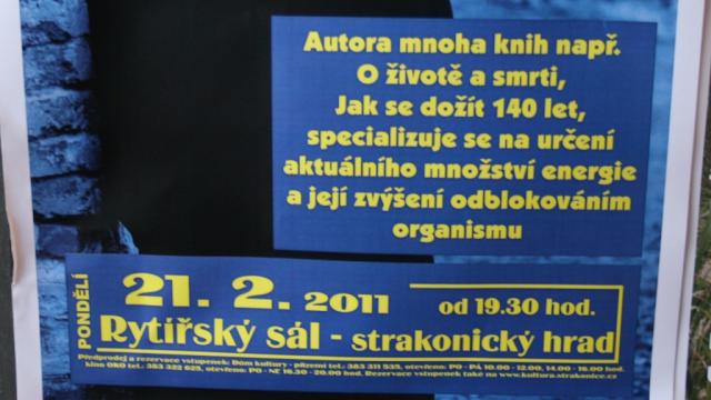 Známý psychotronik Stanislav Brázda navštíví Strakonice se svou přednáškou o energii a jejím zvyšování pomocí odblokování organismu. Na programu jsou i praktické ukázky. Akce se koná v Rytířském sále strakonického hradu, začátek je v 19.30 hodin. (reg)
