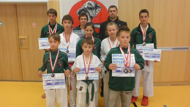 Velmi úspěšné bylo pro strakonické karatisty říjnové kolo krajské ligy, které pořádala škola bojových umění Cobra Ryu Strakonice. Celkem reprezentanti Cobry vybojovali 17 medailí, z toho bylo pět zlatých, sedm stříbrných a pět bronzových. Nejúspěšnější byli dorostenec Lukáš Hanzl a junior Jiří Mlíka, kterým se podařilo zvítězit v disciplínách kata i kumite. Martin Kylberger získal zlato v kumite mladších žáků. (bob)