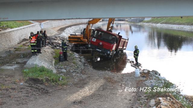 Strakoničtí profesionální hasiči vyprošťovali první listopadový pátek nákladní auto, které se u pravého břehu Otavy nedaleko zimního stadionu převrátilo do řeky. Řidič vozu, který pracuje na stavbě protipovodňových zábran, neutrpěl žádné zranění. Hasiči preventivním položením norné stěny zamezili tomu, aby se případně unikající olej od místa nehody rozšířil dál do řeky. (bob)