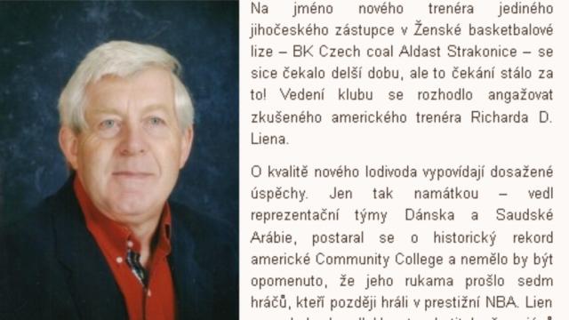 Zajímavá zpráva přišla z basketbalového klubu Strakonice. Novým trenérem ženského týmu bude zkušený Američan Richard D. Lien. Ten kromě jiného koučoval například i reprezentační týmy Dánska a Saudské Arábie. (bob)