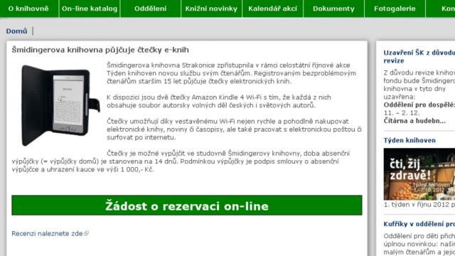 Šmidingerova knihovna ve Strakonicích zpřístupnila novou službu svým klientům. Registrovaným bezproblémovým čtenářům starším 15 let půjčuje čtečky elektronických knih. Bližší informace získáte na webu knihovny. (bob)