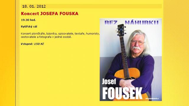 Na tzv. koncertu bez náhubku vystoupí básník, spisovatel, humorista, ale i cestovatel a fotograf v jedné osobě Josef Fousek. Akce se koná v Rytířském sále strakonického hradu ve středu 18. ledna od 19:30 hodin. (mav)