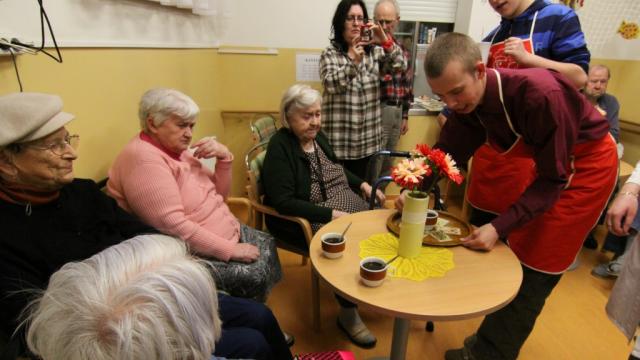 Příjemné odpoledne prožili minulou středu klienti strakonického Domova pro seniory v Lidické ulici. V improvizované kavárničce, která je součástí tohoto sociálního zařízení, jim tentokrát občerstvení podávali mentálně postižení chlapci a dívky, jež navštěvují aktivační centrum působící při Základní škole speciální. Samozřejmě nechyběla dobrá nálada a něco sladkého na zub zbylo i pro obsluhující personál. (bob)
